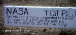 Just after the last shot of the day was taken, a Lockheed/NASA F-104N, flown by NASA chief test pilot Joseph Walker, was sucked into the jet vortex of the giant XB-70. The F-104N flipped over onto the top of the massive bomber, clipped off the bombers left tail section and turned into the massive fireball. The crew of the Valkyrie, initially unaware of the collision, continued in straight and level flight for 16 seconds. However, the aircraft entered into a unrecoverable flat spin. The XB-70 continued down until it struck the desert floor. Al White ejected in the final few seconds, but unfortunately, Major Cross lost his life when the XB-70 impacted the ground.” (copied from http://www.check-six.com). Such a sad ending for 2 military pilots, the one cross bears Joseph Walkers wings and epoxied into the monument are parts of the plane.