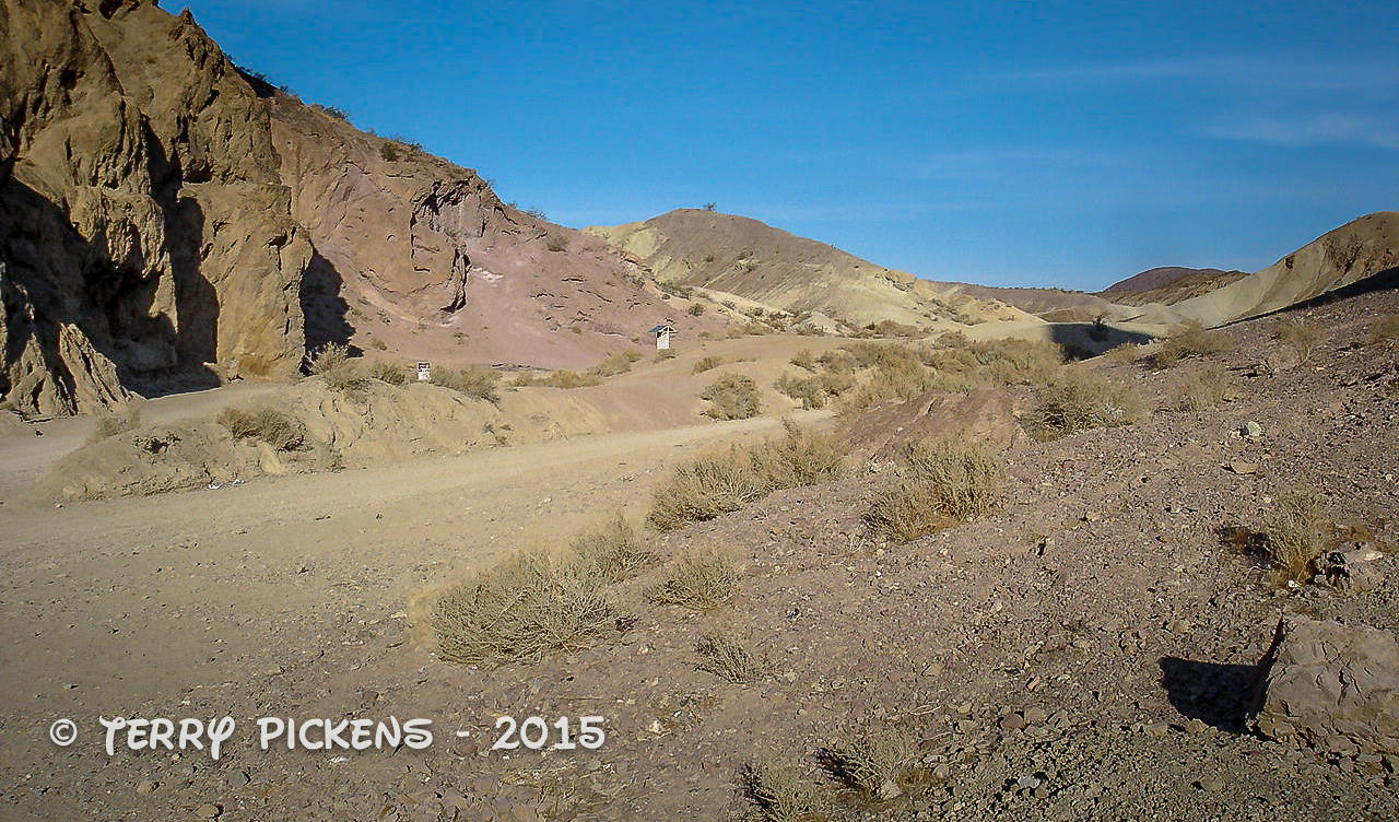 We get ready then head north up Mule Canyon Road to an old dump area called Tin Can Alley. Yes this is an old dumping ground for the miners in the area.